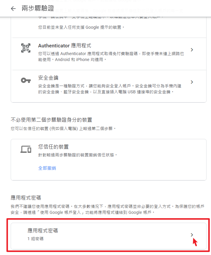 兩階段驗證完成後,再回到兩階段驗證,點選下方應用程式密碼的 > 進入